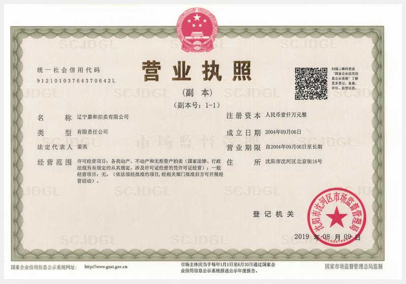 戶(hù)名:遼寧嘉和拍賣(mài)有限公司